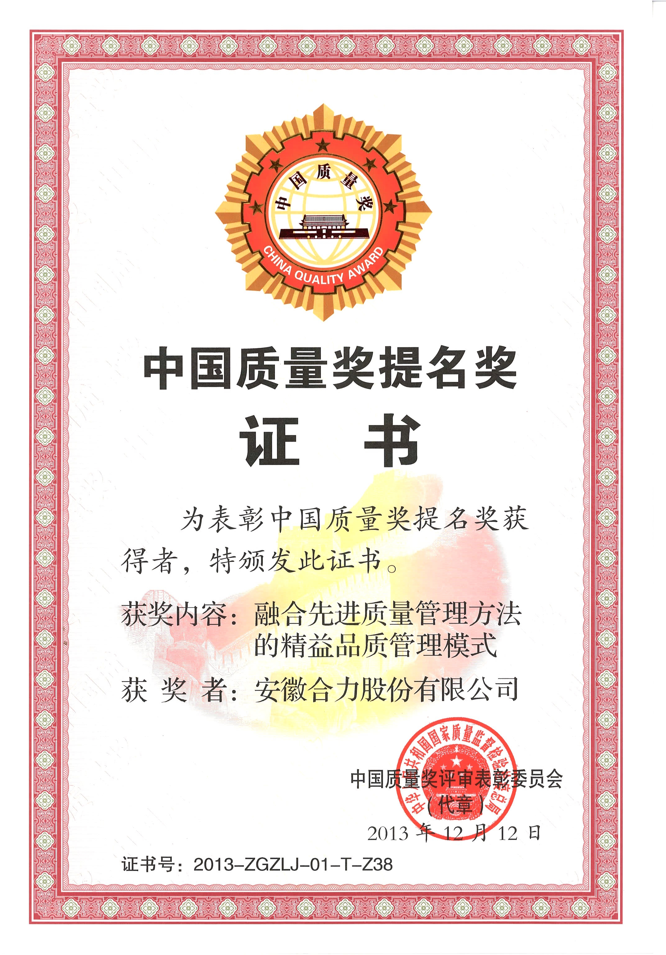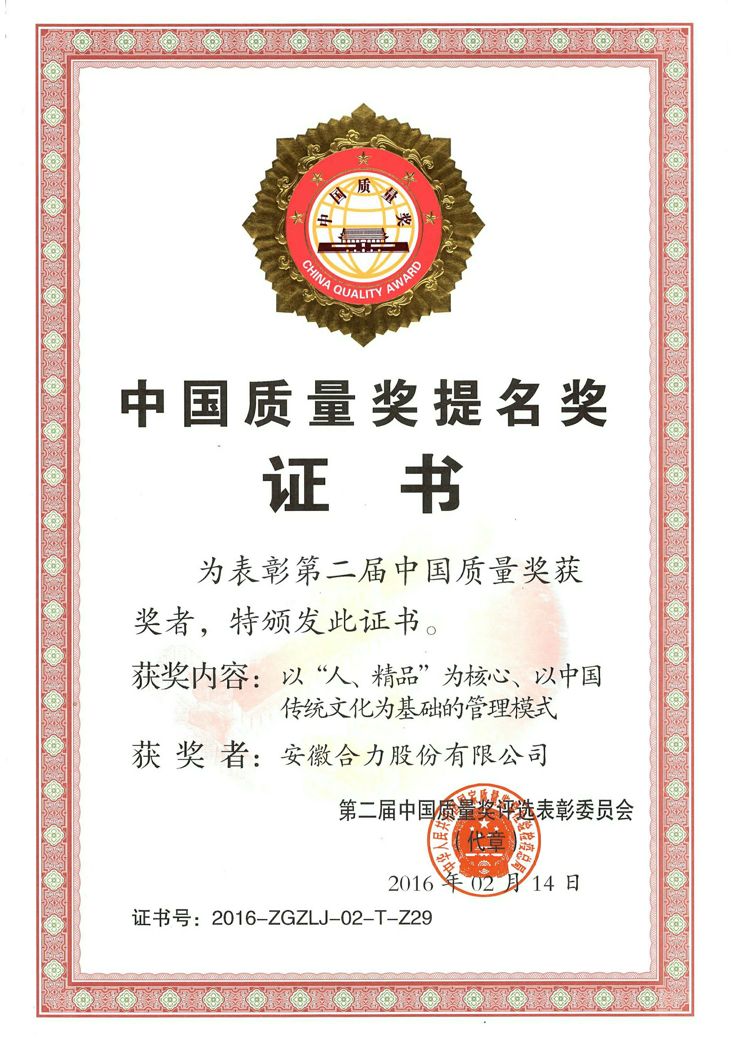 2016 安徽合力股份有限公司中國工業(yè)大獎表彰獎