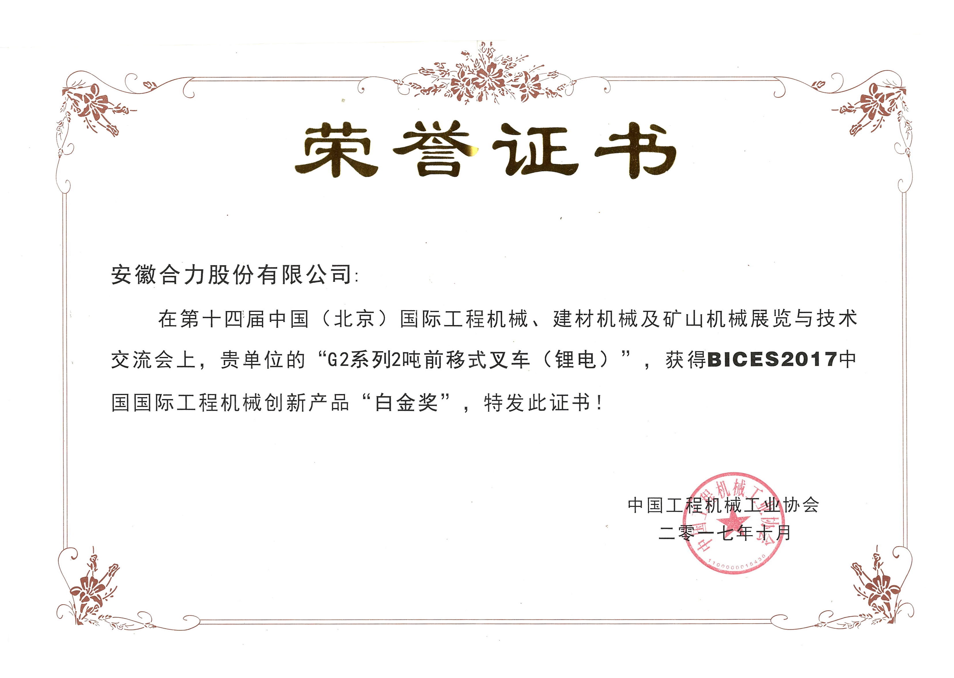 2017 中國國際機械白金獎G2-2噸前移式鋰電